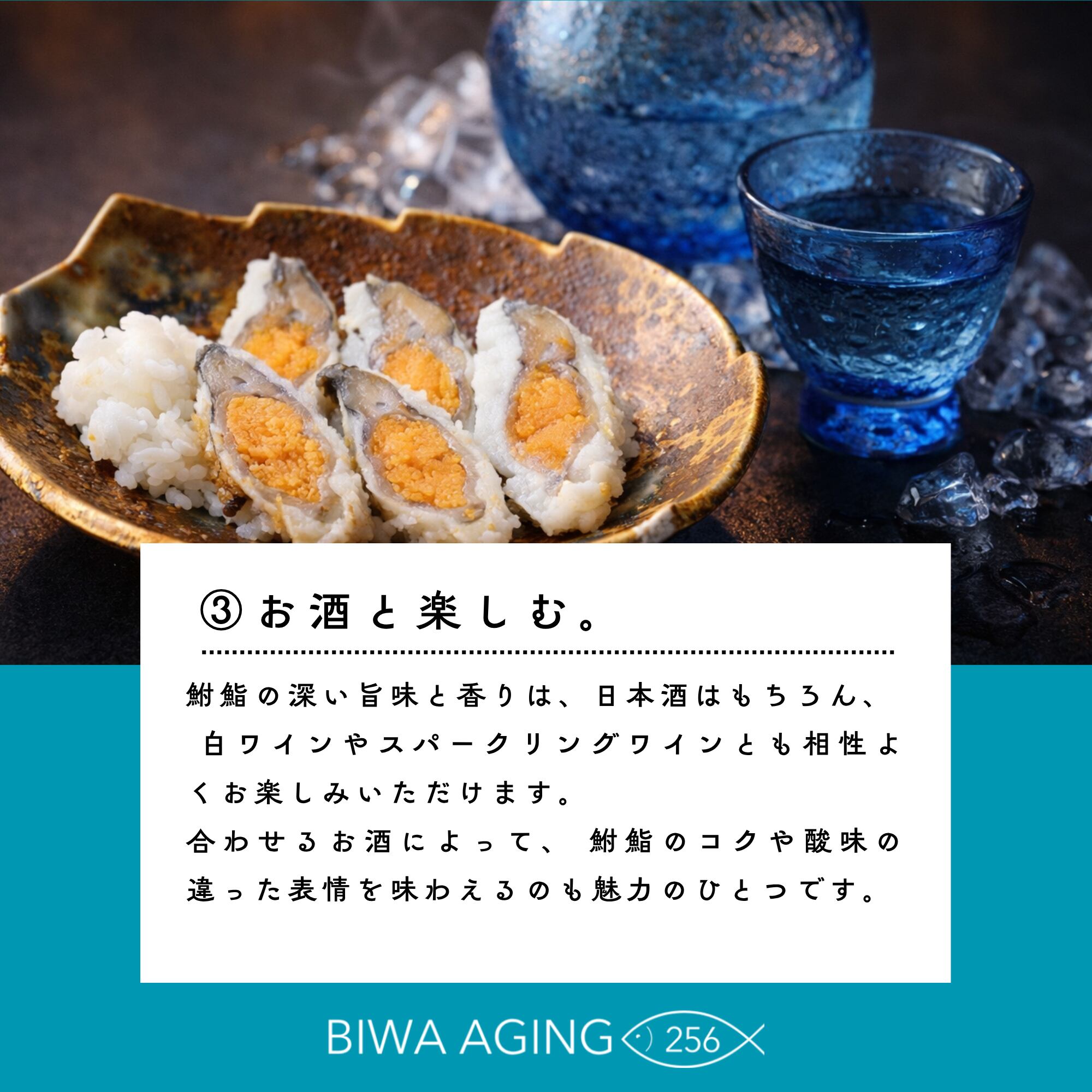 日本酒や焼酎、ワインと合わせて