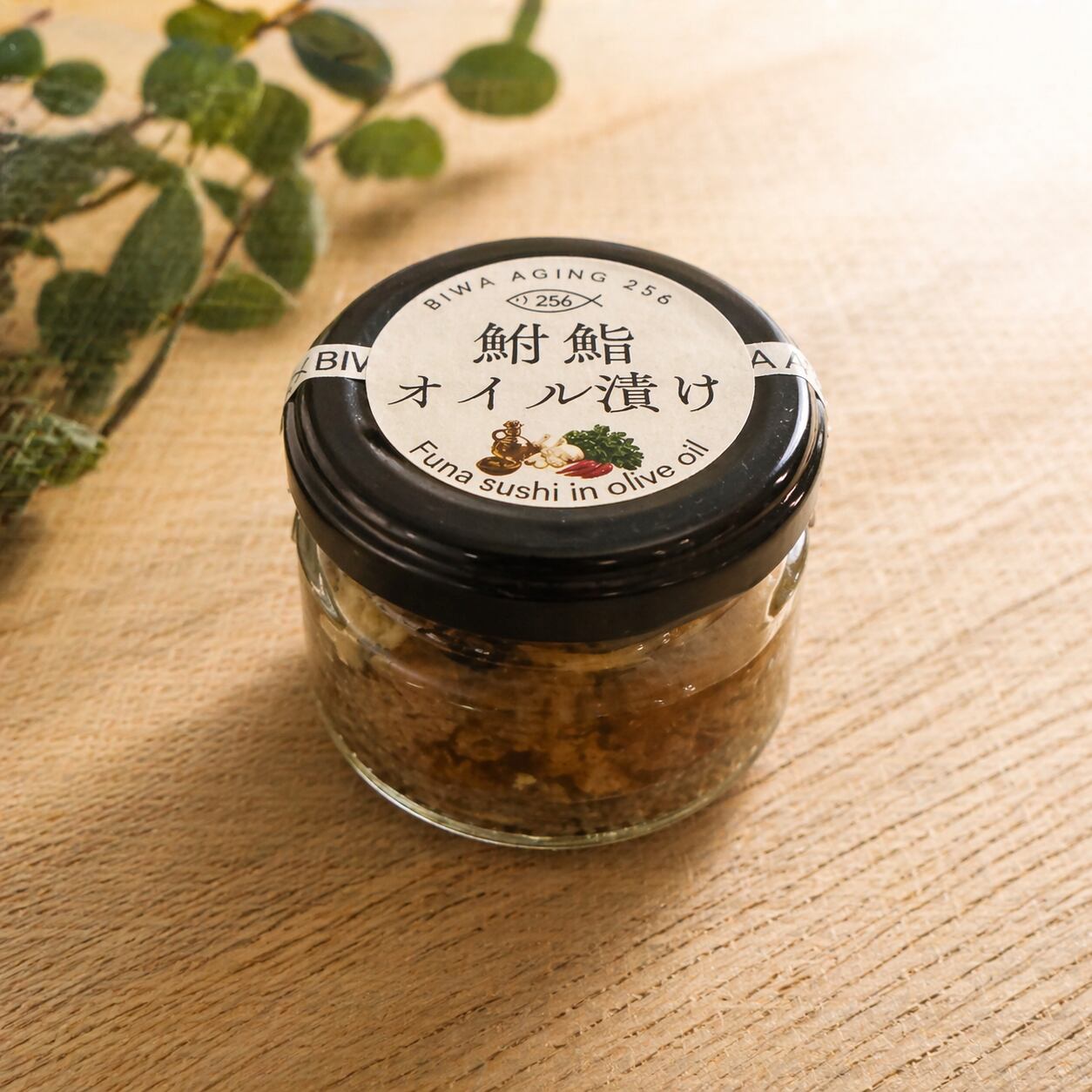 原材料:にごろ鮒(滋賀県産)、うるち米(滋賀県産)、食塩、オリーブオイル、にんにく、唐辛子、ローリエ